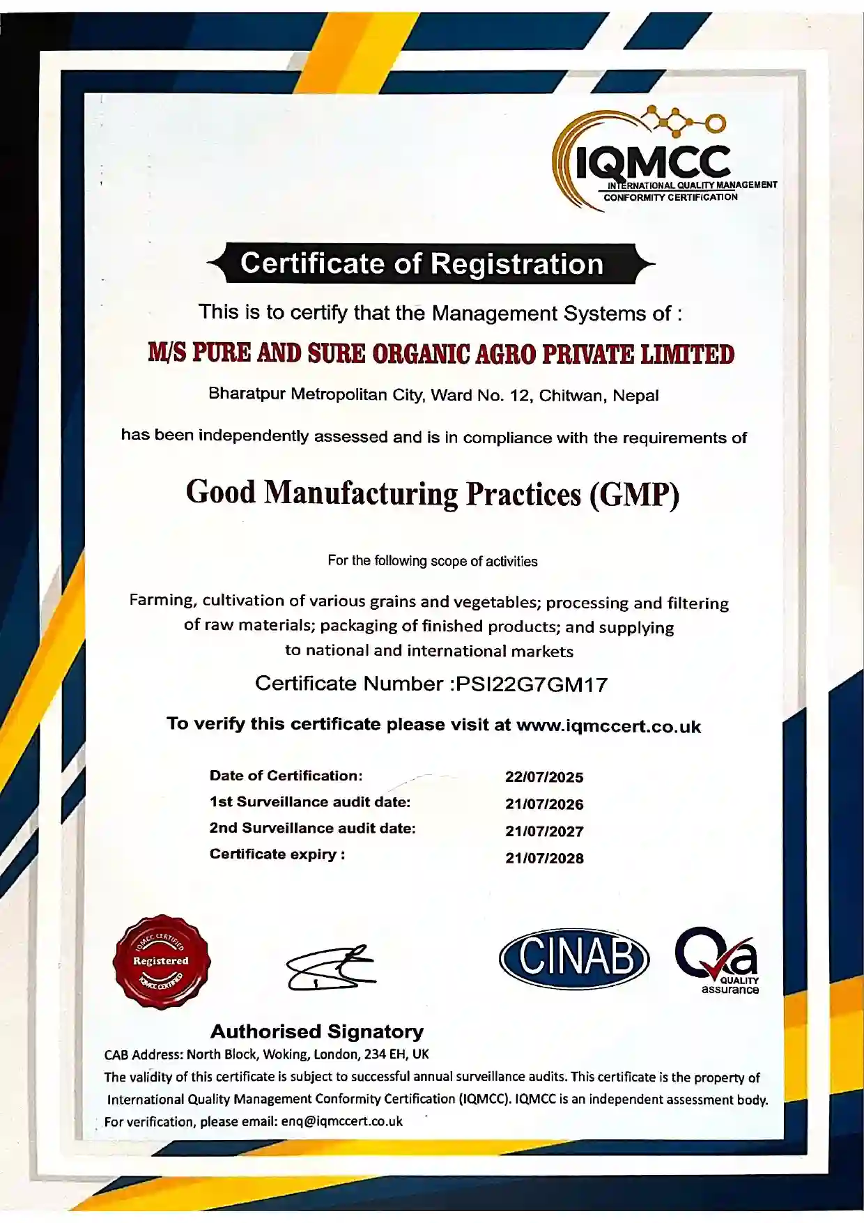 GMP certificate