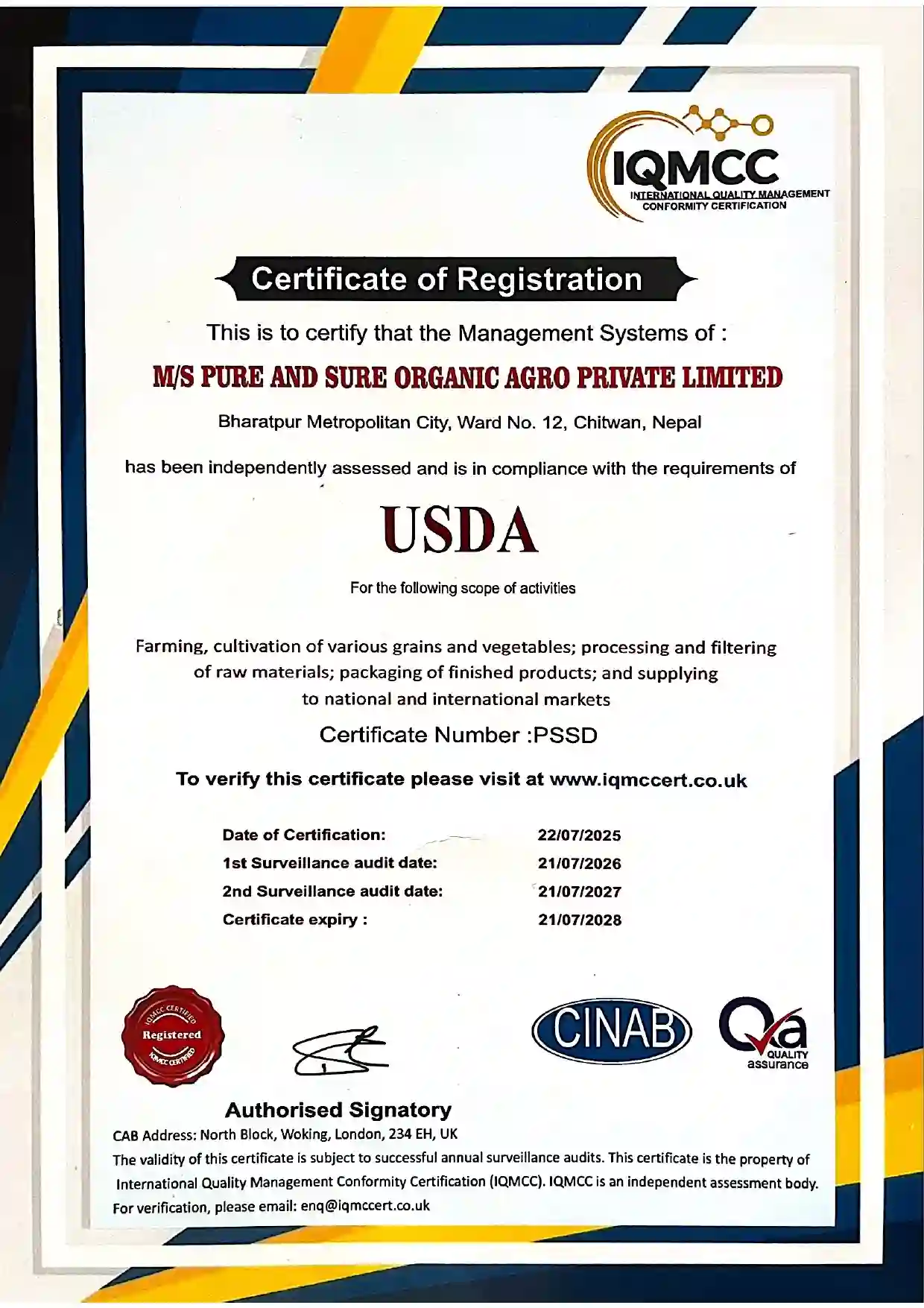 USDA certificate
